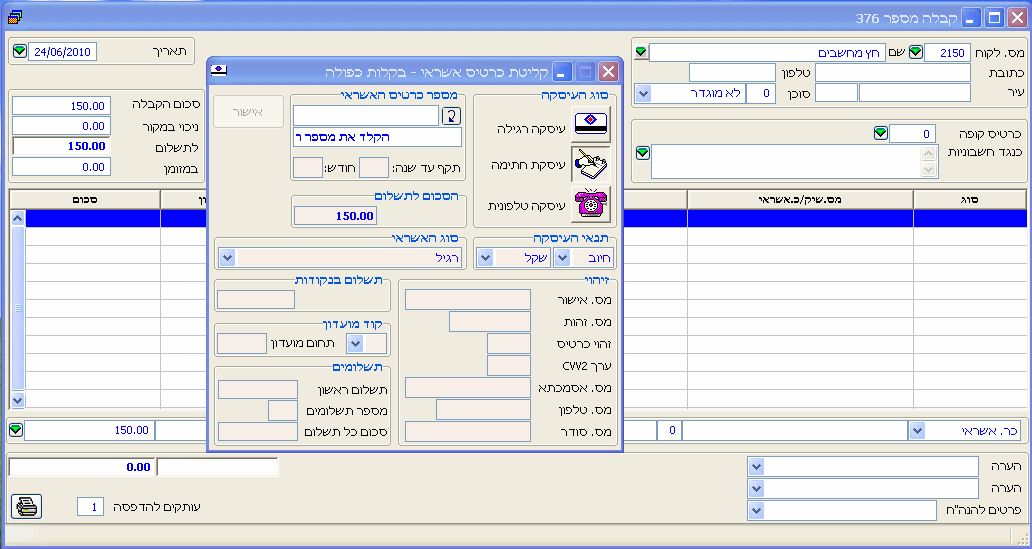 תהליך העבודה עם כרטיסי אשראי