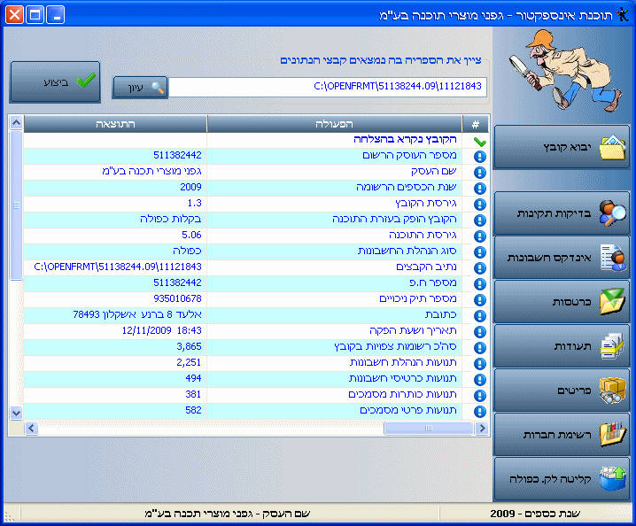 תוכנה זו מאפשרת לבצע ביקורת ובדיקה לקבצים במבנה אחיד שהופקו על ידי תוכנות שונות לניהול עיסקי.