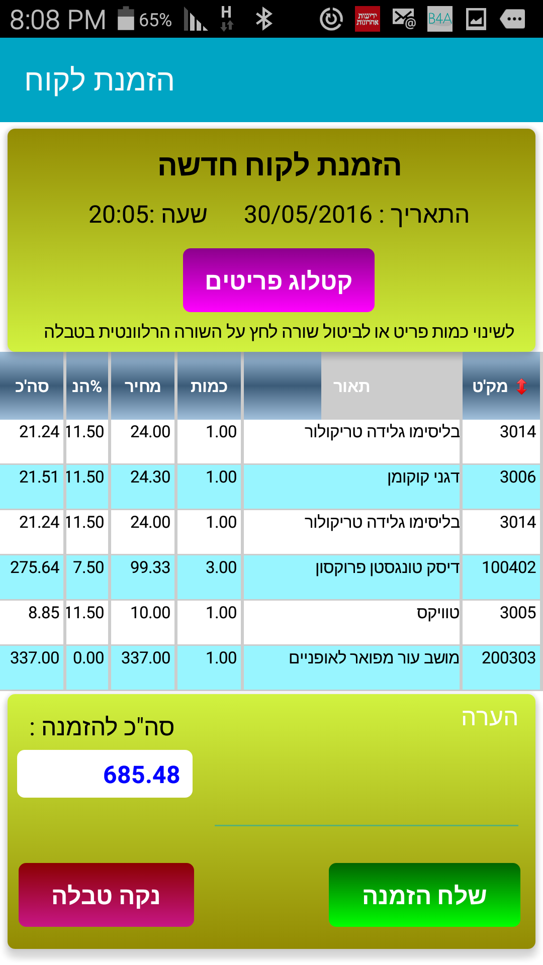 תוכנה לסוכני שטח המאפשרת קליטת הזמנות בשטח ושידורן למשרד המרכזי
