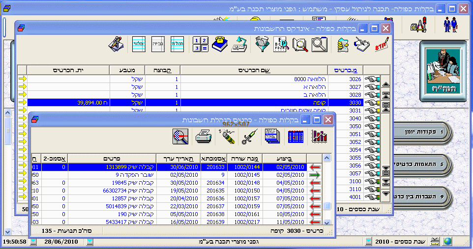כל המסמכים המופקים ע"י המערכת (לקוחות וספקים) יוצרים תנועות של מלאי והנה"ח ON-LINE ללא צורך בעדכון נוסף.