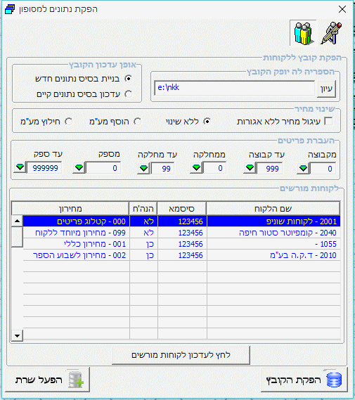 יש ללחוץ על כפתור הפקת הקובת ליצירת קובץ לקוחות